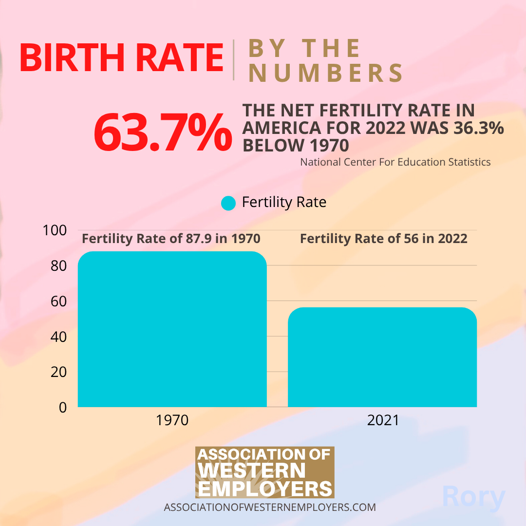Analysis by the Center For Education Statistics shows that in 2022 the national fertility rate for the United States dropped by .54% to 56 from 87.9 in 1970.